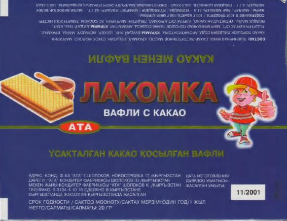 | (51) МКТУ: | 30 - кондитерские изделия: вафли, печенье, кондитерские плитки с добавлением какао. |